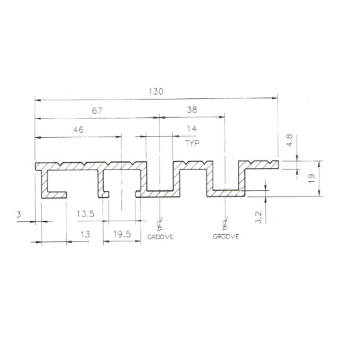 two speed aluminium track (universal) per metre